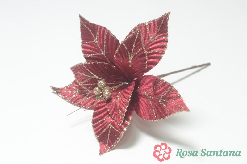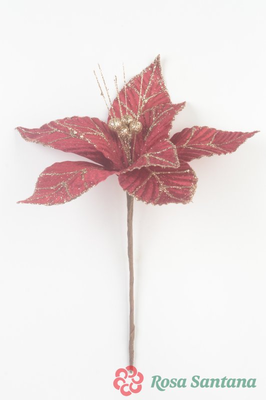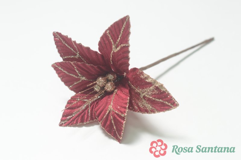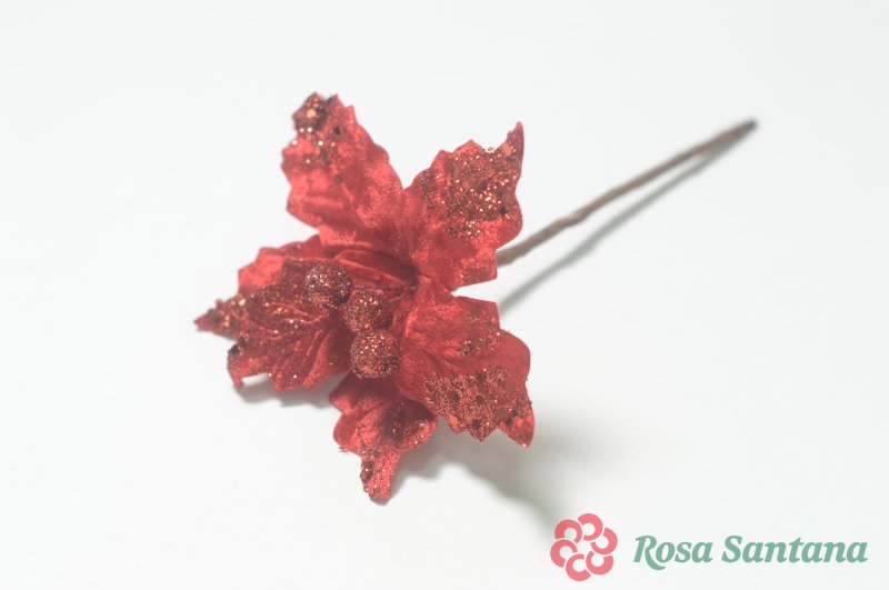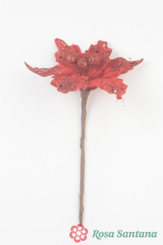 Голова пуансеттии с ножкой (d-16 cm) для ветки, венка
