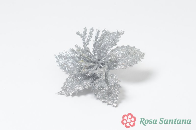 Голова пуансеттии-снежинки мерцающая для ветки, венка