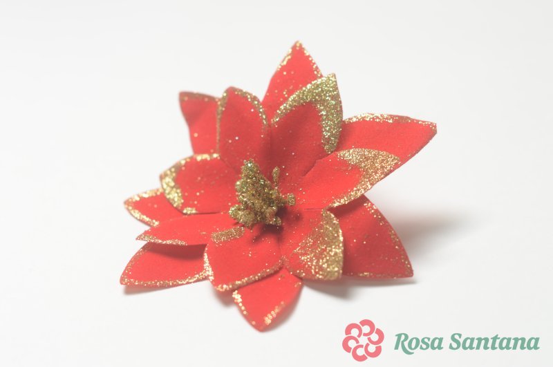 Голова пуансеттии с золотым кантом для ветки, венка