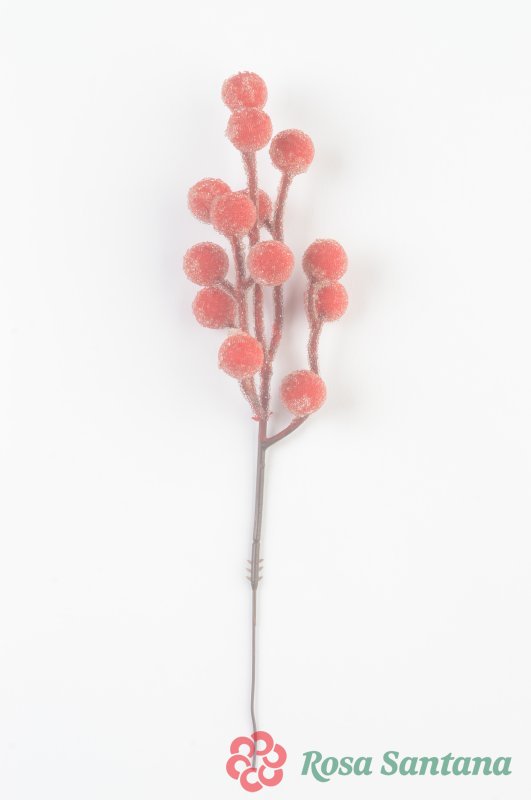 Ветка ягоды 13 ягод в сахаре для декора красный